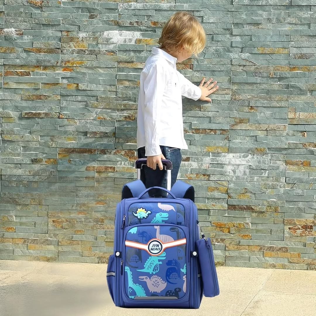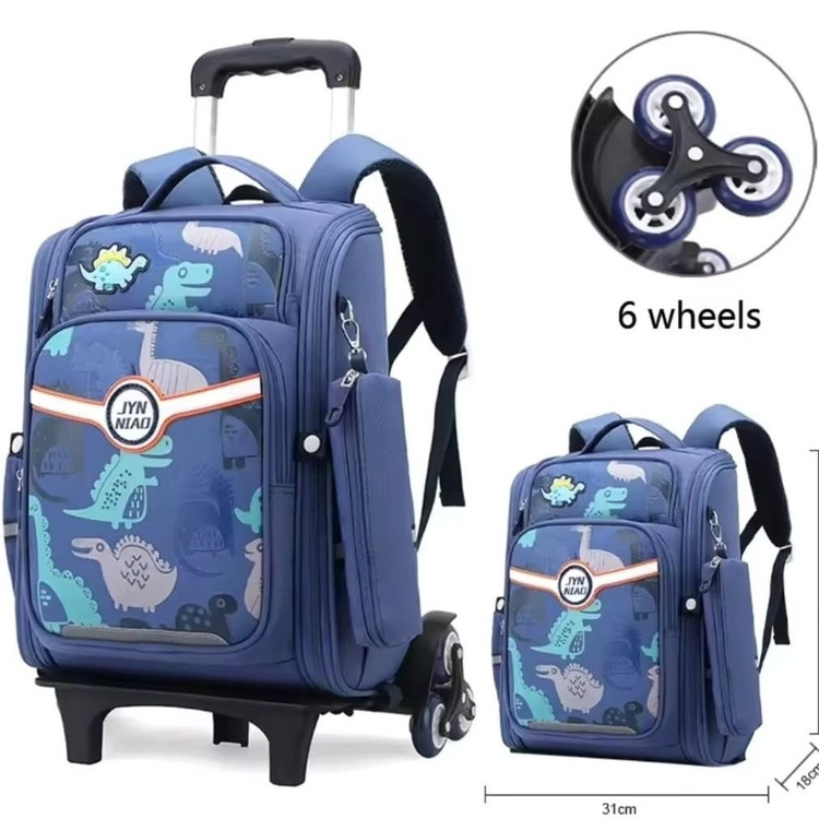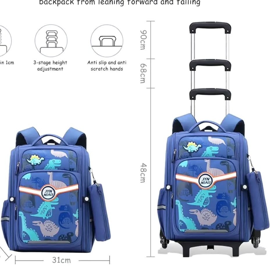 توضیحات: کوله چرخدار طرح دایناسور همراه جامدادی ابعاد ۲۸ *۱۶* ۳۸ وزن کوله ۷۵۰ گرم جنس برزنت دارای شش چرخ (سه چرخ در هرطرف) مناسب برای بالا رفتن از پله قابلیت جدا کردن کوله از چرخ و استفاده مجزا از کوله بند طبی پشت طبی و ضد عرق