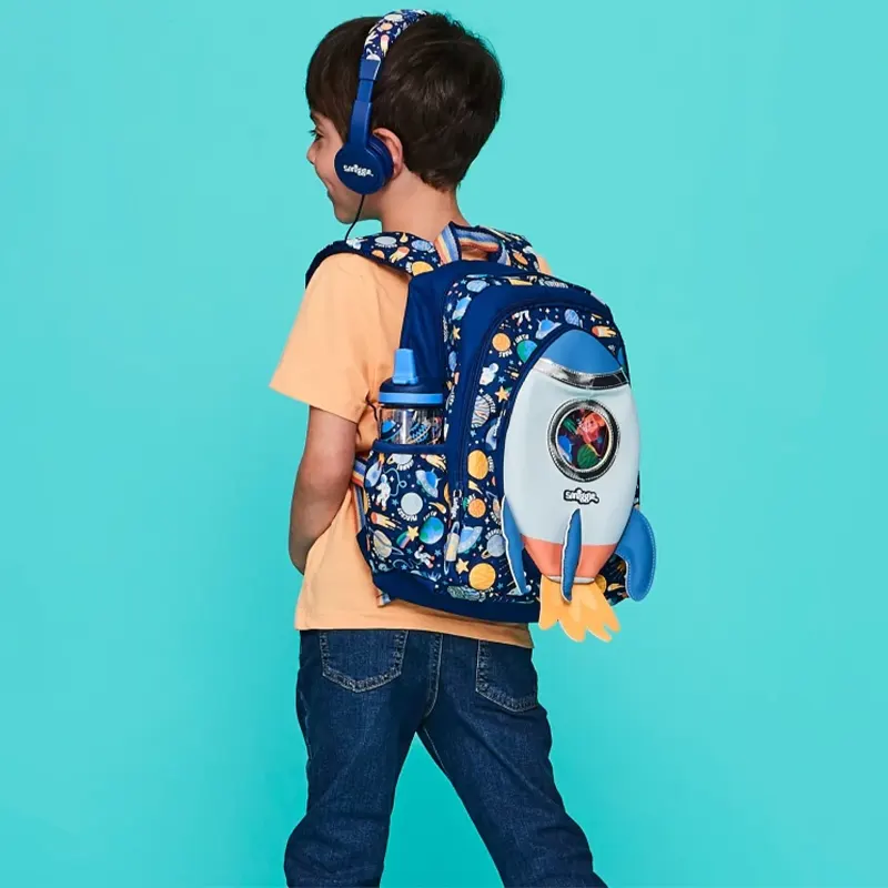 کوله پشتی اسمیگل طرح موشک فضانورد یک کوله پشتی زیبا، مقاوم، سبک و جادار برای کودکان شما. کوله پشتی های برند اسمیگل یک گزینه ی عالی برای مدرسه و کلاسهای کوچولوهای 5 تا 9 سال و برای چندین سال می تواند همراه کودکان شما باشد. این کوله پشتی با طرح برجسته موشک فضانورد خودش یک هدیه فوق العاده برای طرفداران کهشان و دنیای راه شیری می باشد. این کوله کیفیت دوخت و چاپ فوق العاده ای دارد و هر کودکی را مجذوب خود می کند. این کوله دارای بند های قابل تنظیم و بسیار نرم از فوم می باشد همچنین دارای 2 زیپ بزرگ و جادار می باشد.