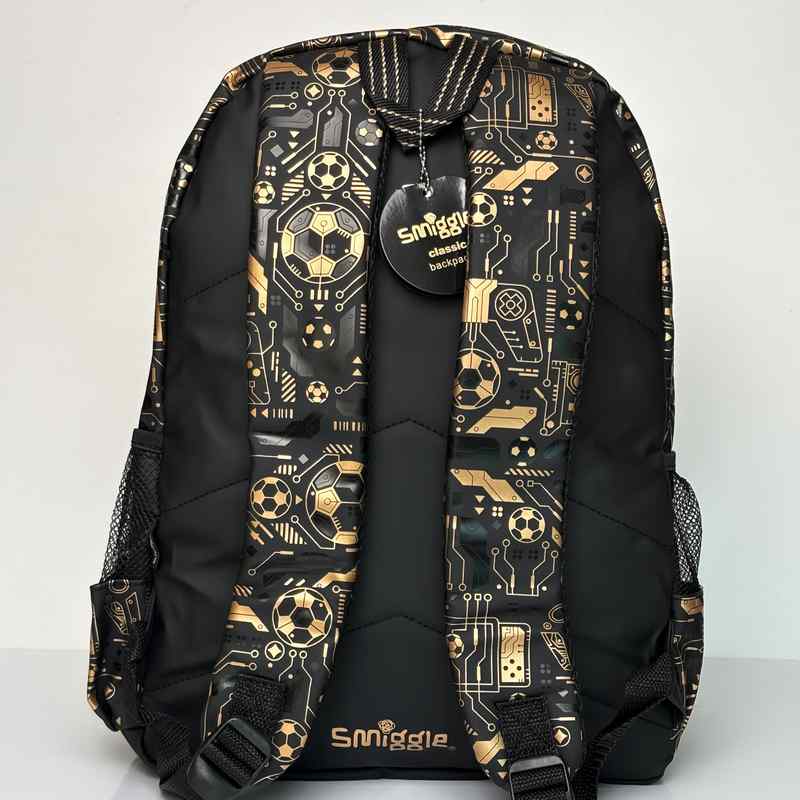 برند اسمیگل طرح فوتبال یک کوله پشتی بزرگ و جادار برای دوران دبستان کودکان 7 تا 13 سال است. این کوله پشتی دارای دستگیره اسفنجی، بند نرم و مشبک با قابلیت تنظیم ارتفاع، 3 زیپ بزرگ و کاربردی، جای لپ تاب و محفظه جدا کننده درون کوله پشتی و همچنین دارای 2 جای قمقمه توری بسیار محکم است. همچنین این کوله پشتی محفظه ای برای قرار دادن موبایل و سیم هندسفری دارد.