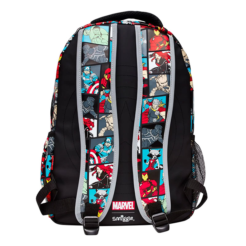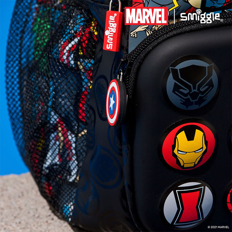 برند اسمیگل طرح قهرمانان مارول یک کوله پشتی بزرگ و جادار برای دوران دبستان کودکان 7 تا 13 سال است. این کوله پشتی با دارای طرح مارول و نماد های مشبک از قهرمانان مختلف مانند اسپایدرمن، هالک، آیرون من، کاپیتان آمریکا و... است که مانند پیکسل است. این کوله پشتی دارای دستگیره اسفنجی، بند نرم و مشبک با قابلیت تنظیم ارتفاع، 2 زیپ بزرگ و کاربردی، 1 زیپ کوچکتر اما جادار، جای لپ تاب و محفظه جدا کننده درون کوله پشتی و همچنین دارای 2 جای قمقمه توری و جنس کوله پشتی بسیار محکم در دو طرف کوله پشتی است.