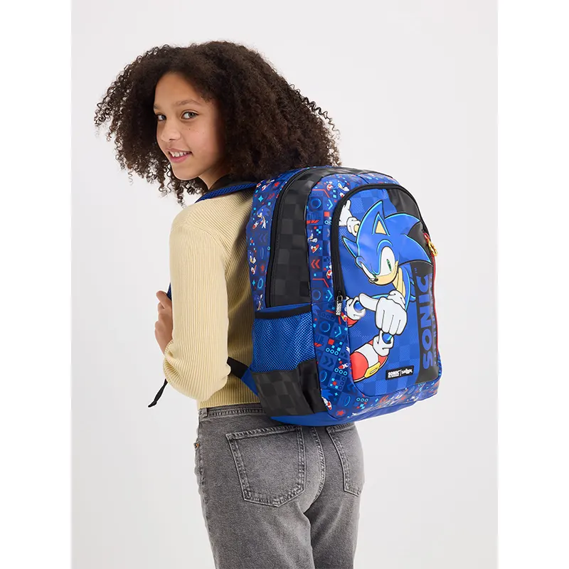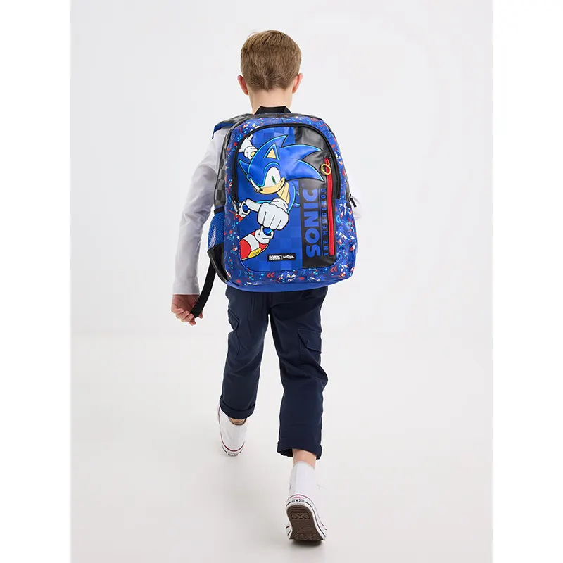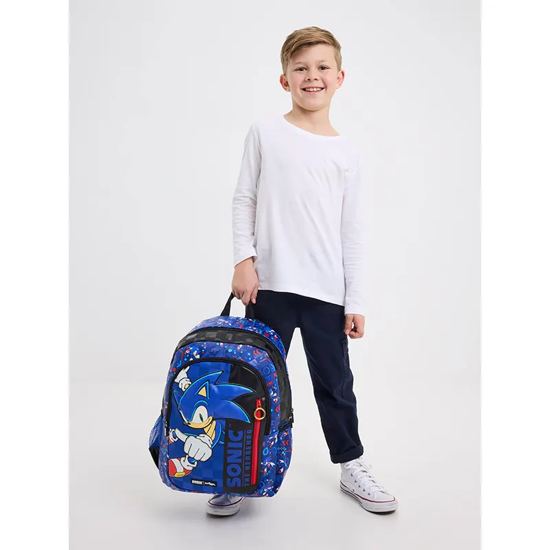 برند اسمیگل طرح سونیک یک کوله پشتی بزرگ و جادار برای دوران دبستان کودکان 7 تا 13 سال است. این کوله پشتی دارای دستگیره اسفنجی، بند نرم و مشبک با قابلیت تنظیم ارتفاع، 3 زیپ بزرگ و کاربردی، جای لپ تاب و محفظه جدا کننده درون کوله پشتی و همچنین دارای 2 جای قمقمه توری بسیار محکم است. این کولهپشتی دارای 3 محفظه زیپدار است تا وسایلتان از جمله لوازمالتحریر، لپ تاپ، خوراکی و... را درون آن بگذارید! همچنین دارای دو محفظه مخصوص بطری آب و بندهای شانهای قابل تنظیم و پددار است. این کوله پشتی را با یک پارچه مرطوب تمیز کنید. این کوله پشتی با لانچ بگ، جامدادی و کیف پول همین مدل لانچ بگ اسمیگل طرح سونیک یک ست زیبا می شود.